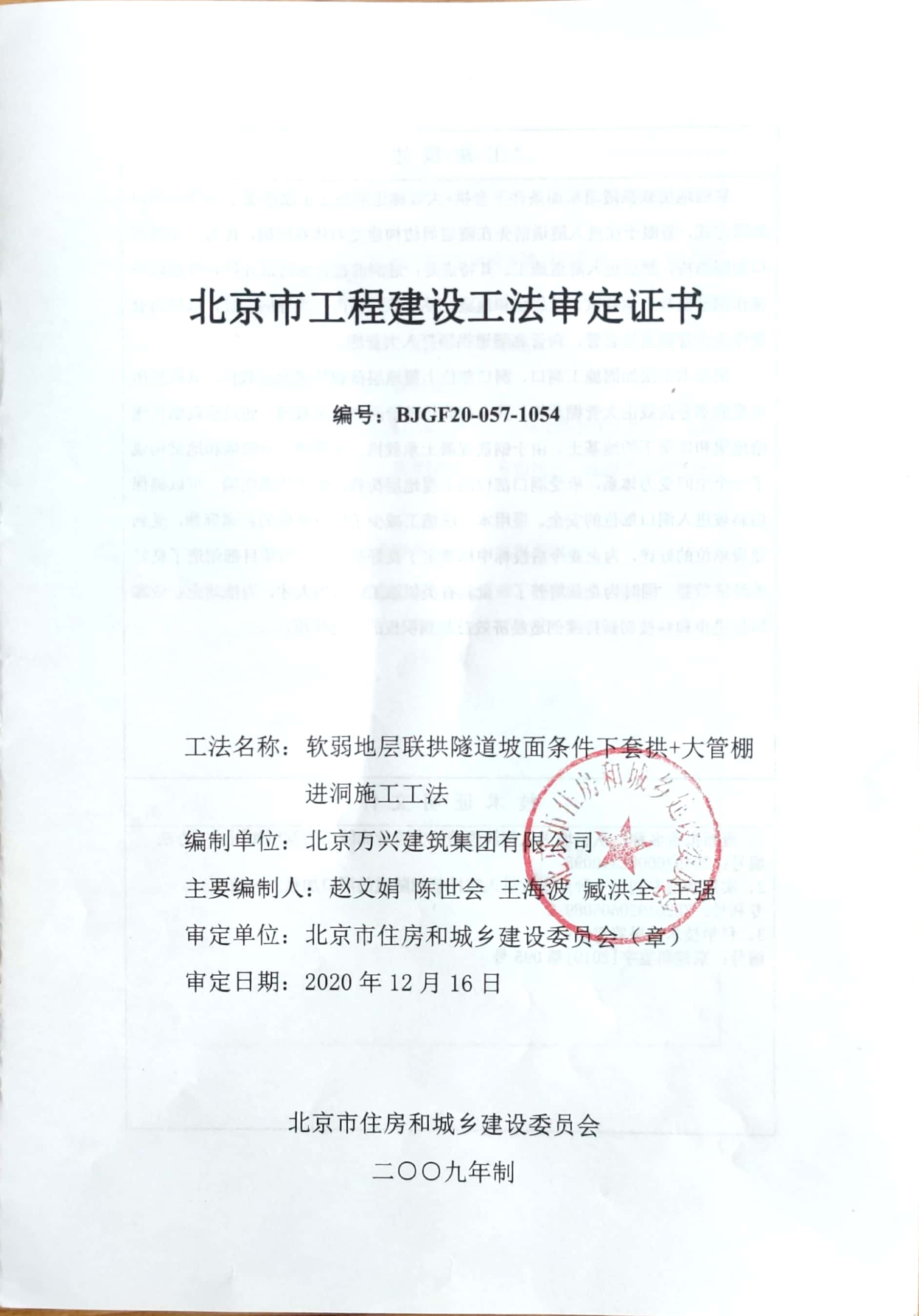 北京市工法—波形瀝青防水板坡屋面施工工法審定證書