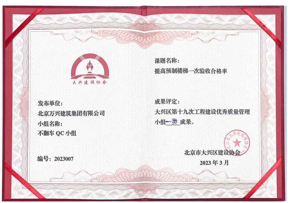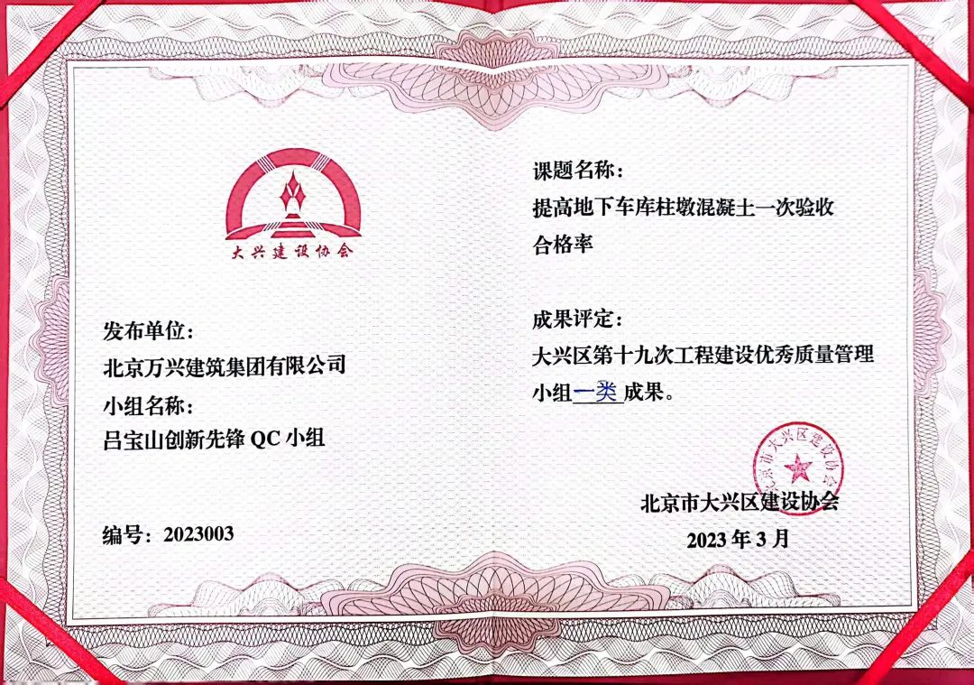 集團(tuán)多項(xiàng)QC小組活動成果榮獲北京市大興區(qū)建設(shè)協(xié)會一類成果