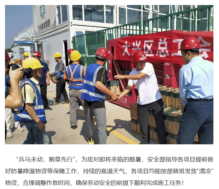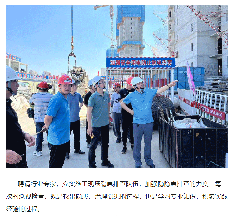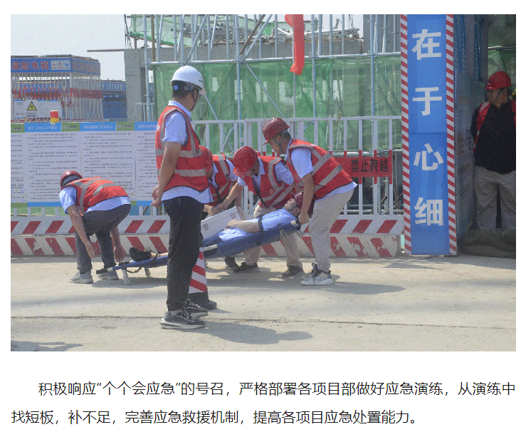 【概要描述】在第二十二個全國“安全生產(chǎn)月”,集團公司安全部圍繞“人人講安全 個個會應急”的主題,組織安全知識競賽和教育培訓,廣泛宣傳安全生產(chǎn)知識,使安全意識深入人心;實行隱患排查和應急演練并舉,提高全員安全管理水平和應急處置能力,強化安全生產(chǎn)底線思維;發(fā)揮智慧工地創(chuàng)新優(yōu)勢,拓寬管理思路,升級安全管理模式;部署防暑降溫物資保障工作,組織各項目落實高溫天氣施工安全保障措施。
