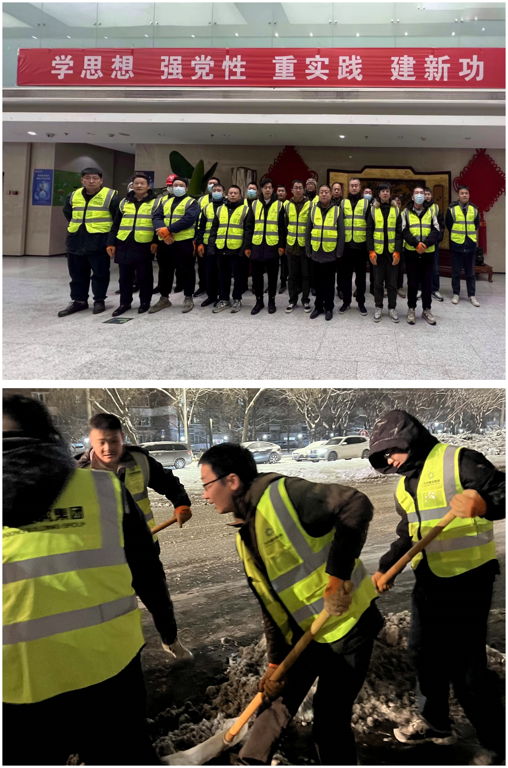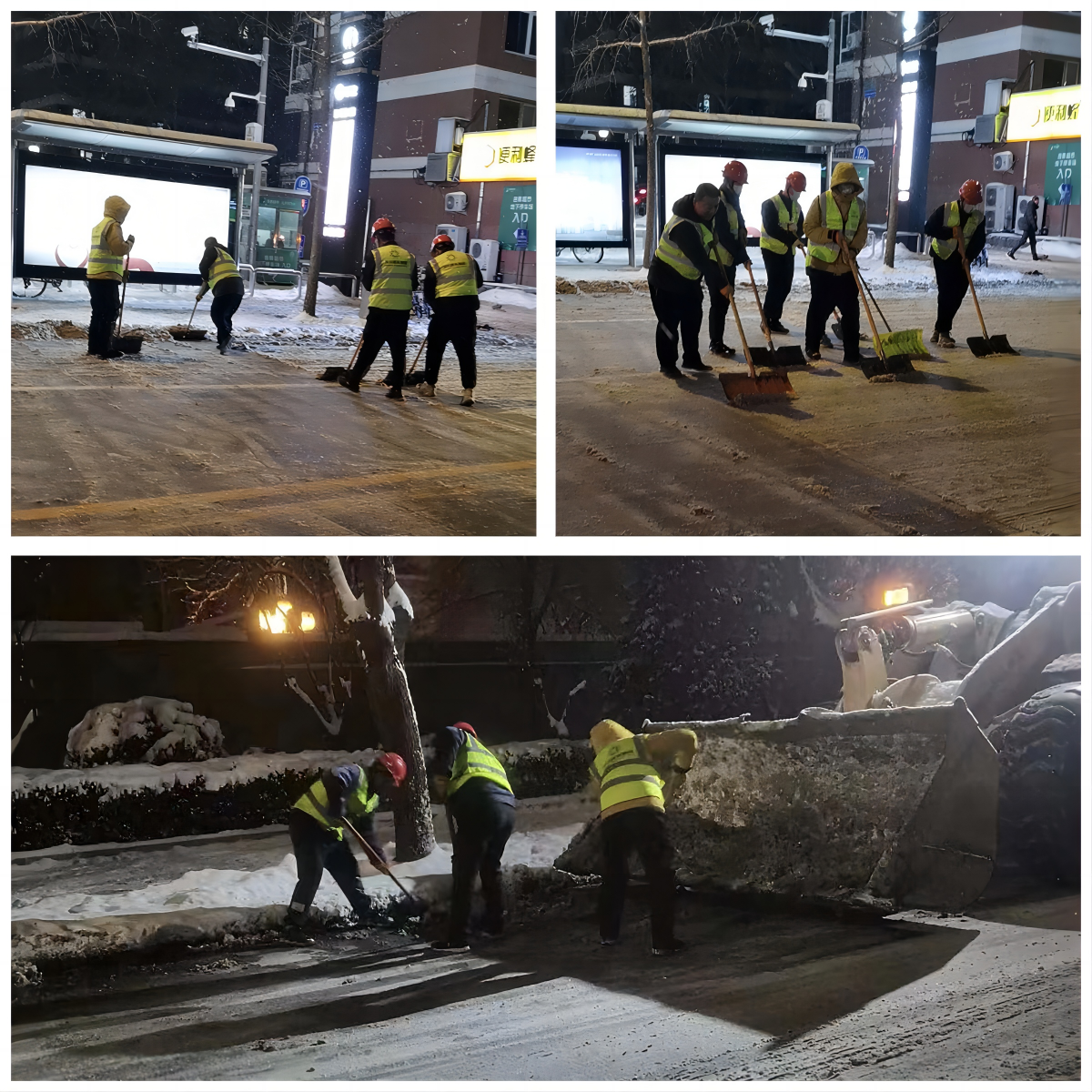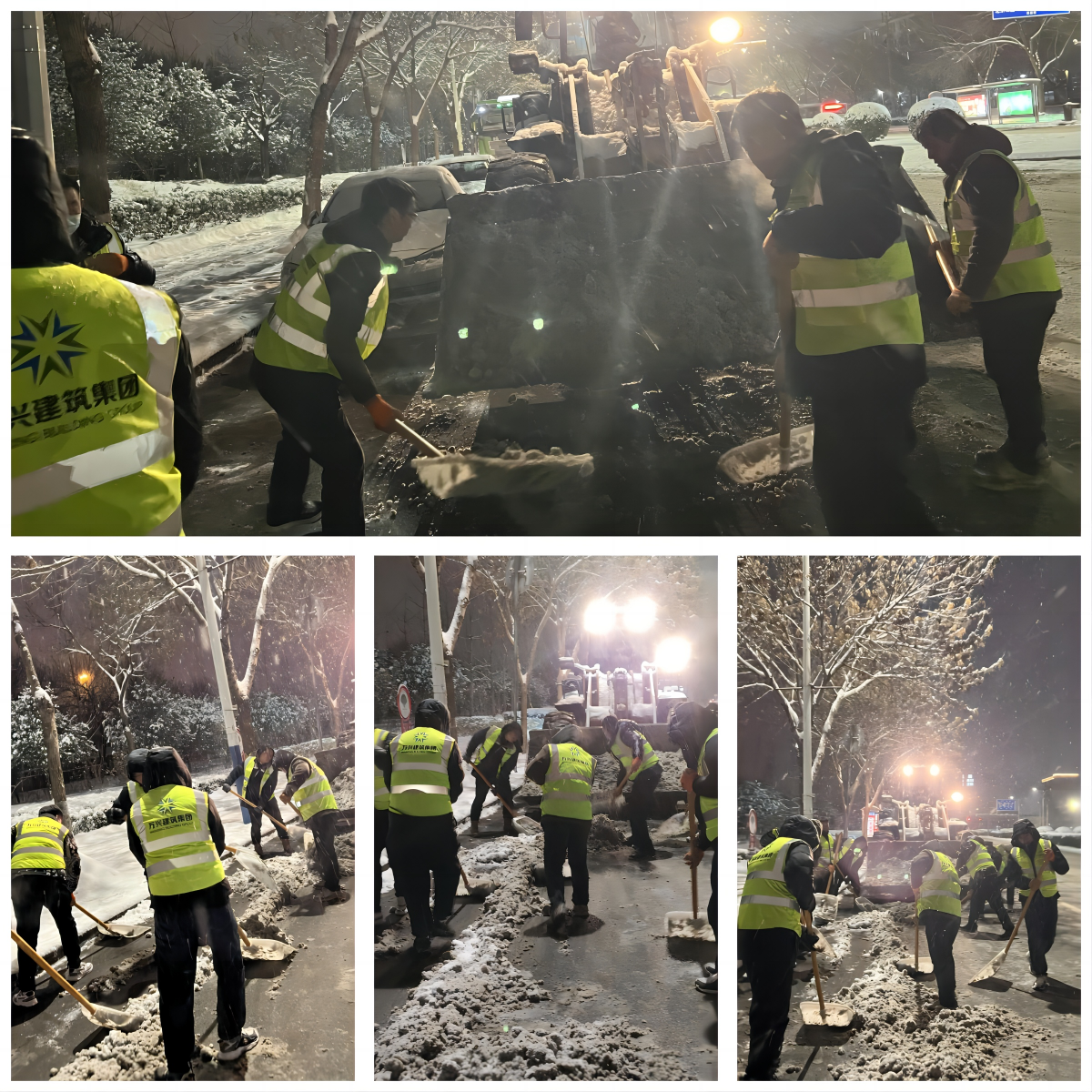 集團安全總監(jiān)李春濤、安全部部長王松等領(lǐng)導(dǎo)親自帶隊,分兩組在北興路、印刷學(xué)院北門路段、棗園路段等三個重要路段進行掃雪鏟冰工作。在寒風(fēng)暴雪中,他們不畏嚴(yán)寒,手持鐵鍬,你鏟我掃,齊心協(xié)力,經(jīng)過近4個小時的連續(xù)奮戰(zhàn),直到23點半才圓滿完成任務(wù),清理完畢的道路給市民送去的不僅是出行的安全,更傳遞了冬日里的一份別樣的溫暖。