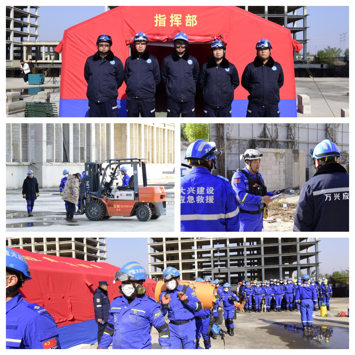 北京萬興應(yīng)急救援隊(duì)接大興區(qū)應(yīng)急局的通知,積極響應(yīng),調(diào)派隊(duì)員、機(jī)械設(shè)備,協(xié)助場地布置并全程參加演練。