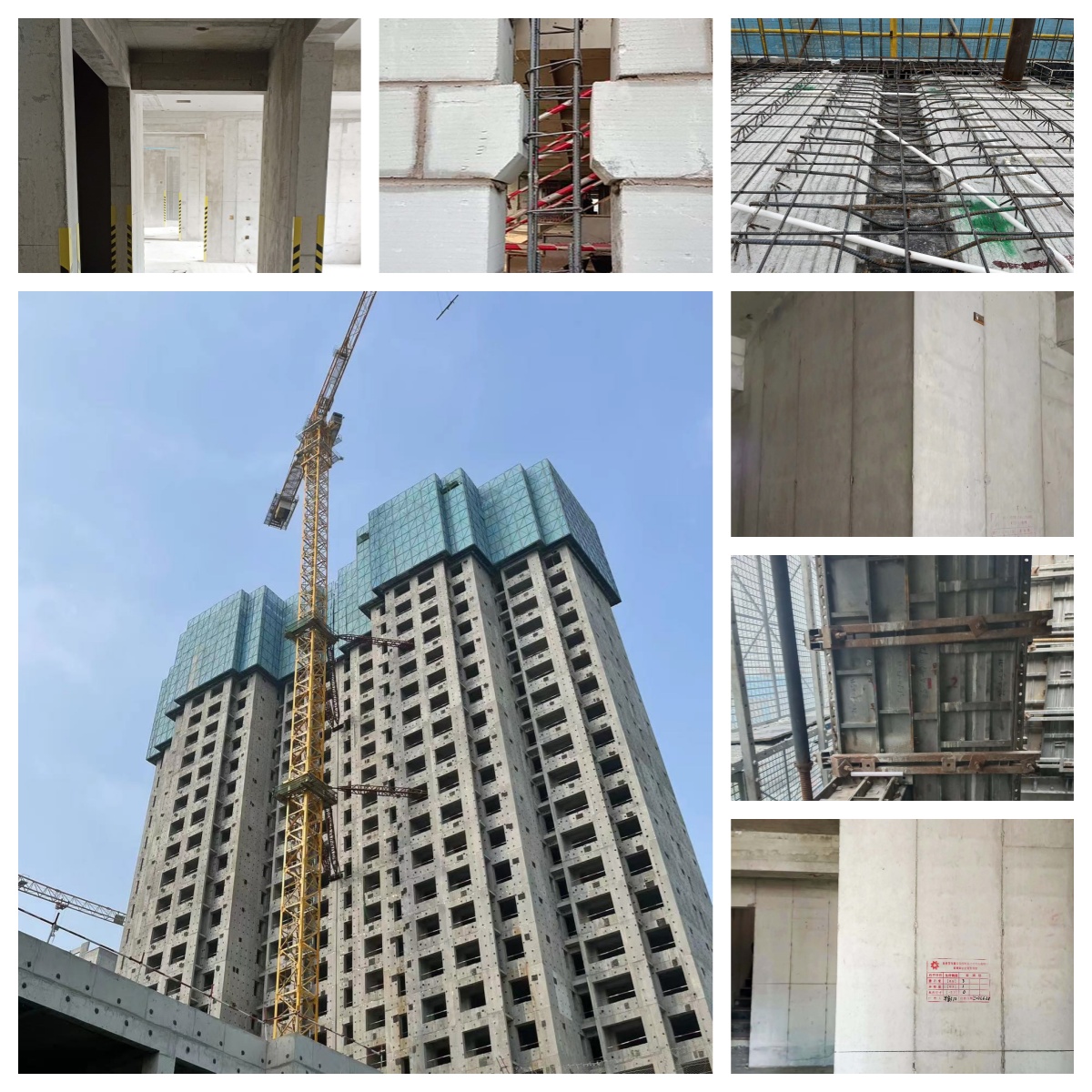 在項目建設初期,為加速施工進程并確保施工質量,項目決定采用外防護架爬架與鋁膜相結合的施工方法,不僅提高了施工生產效率,同時也切實提高了混凝土的主體外觀質量。在各方領導的關心和支持下,在集團公司副總經(jīng)理馬和平的帶領下,項目部全體成員克服了夏季高溫酷暑、汛期頻繁暴雨等諸多不利因素,經(jīng)過170天緊鑼密鼓的施工后,比預定工期提前8天,實現(xiàn)了全面封頂?shù)氖┕つ繕恕?/font>